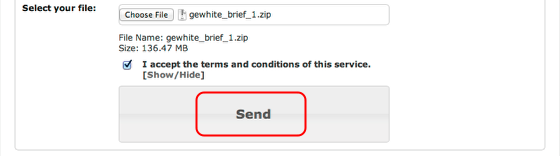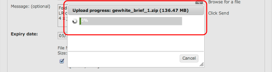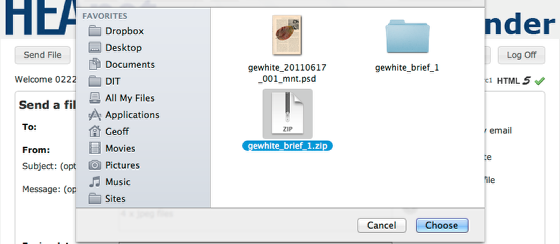 Note: File Sender will only allow one file at a time to be sent, therefore multiple files should be placed in a folder and compressed (zipped) as one file.