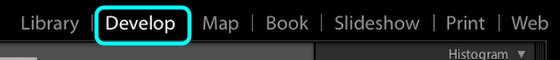 Select Develop on the top right of the Lightroom interface.