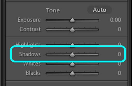 Now slide the Shadows slider right to about +60