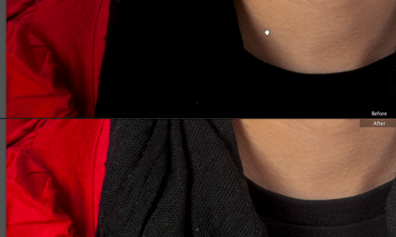 Note how the detail in the black scarf is now visible.