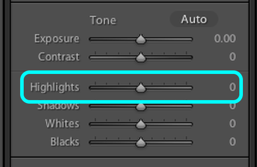 Highlights slider works lighteninging or darkening the lighter tones in the image without efecting the lightest tones.