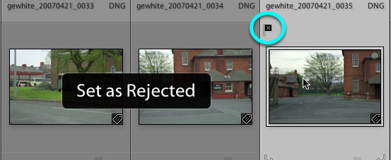 Press the X Key to Flag an image as a Reject. Note the Black Flag.