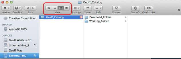 Change the folder view to Column View, your folder structure should look as illustrated.
