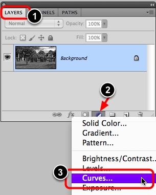 Double Click on the Curves icon if the Adjustments panel is not open.