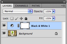Black & White adjustment layer should now be immediately above the Background layer.