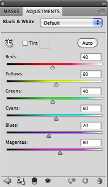 Adjust the Black & White adjustment layer sliders to maximise the monochrome effect.