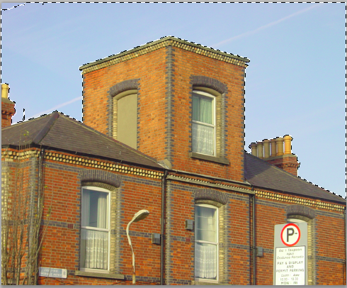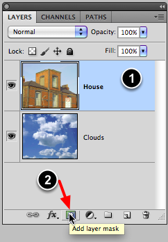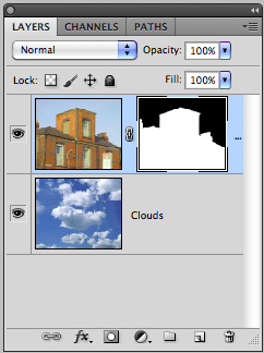 This will now create a layer mask on the House layer which will "remove" the sky from the image leaving only the building portion.
