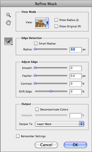 Using the Refine Mask tools, adjust the masks edges to fit the building contours.