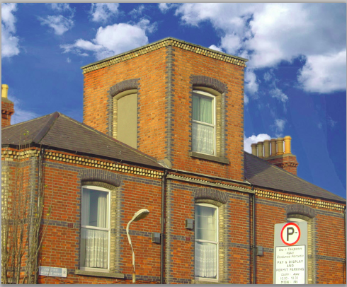 Check the mask edges to see if it needs further adjustments. Note the edge line around the chimney pots.