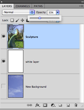 In the Layers Palette, Select the layer to be masked and reduce the Opacity to about 33%.