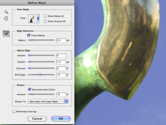 Use the Refine Mask Palette tools to complete the masking.